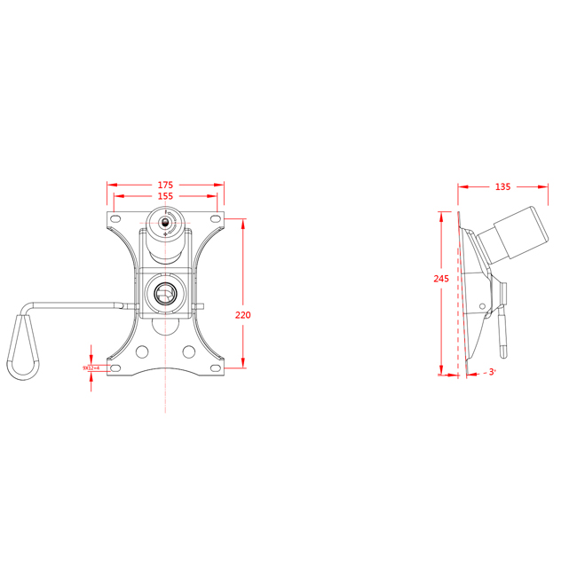 • 倾仰角度1级锁定,倾仰角度0 ~ 17°。